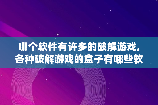 哪个软件有许多的破解游戏,各种破解游戏的盒子有哪些软件