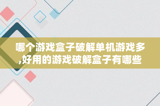 哪个游戏盒子破解单机游戏多,好用的游戏破解盒子有哪些软件