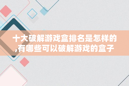 以上内容就是关于有哪些可以破解游戏的盒子的问题**解答了,如果对你有所帮助的话,请收藏关注本站,这里将更新更多关于有哪些可以破解游戏的盒子的内容。