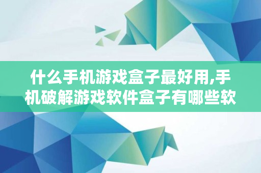 以上内容就是关于手机破解游戏软件盒子有哪些的问题**解答了,如果对你有所帮助的话,请收藏关注本站,这里将更新更多关于手机破解游戏软件盒子有哪些的内容。