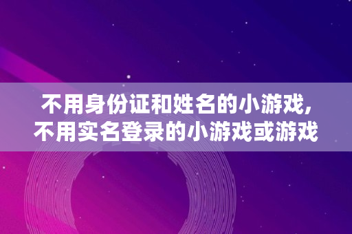 不用身份证和姓名的小游戏,不用实名登录的小游戏或游戏