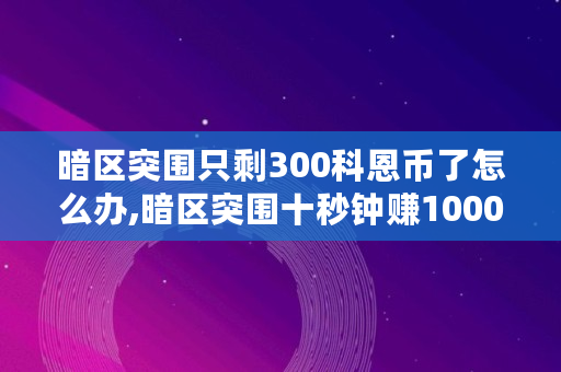 暗区突围只剩300科恩币了怎么办,暗区突围十秒钟赚1000万
