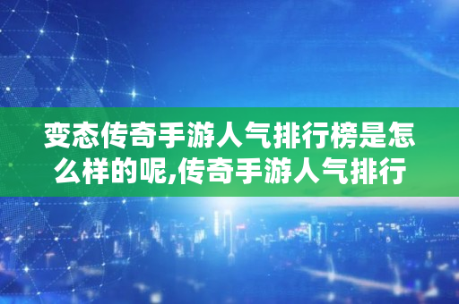 变态传奇手游人气排行榜是怎么样的呢,传奇手游人气排行榜前十名单