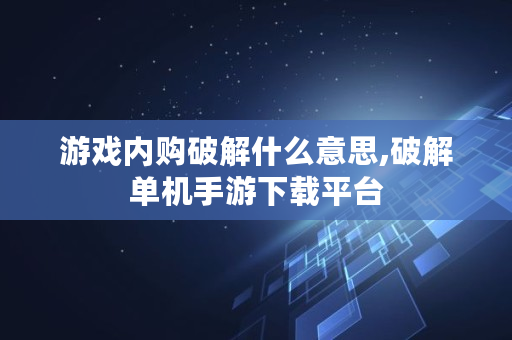 游戏内购破解什么意思,破解单机手游下载平台