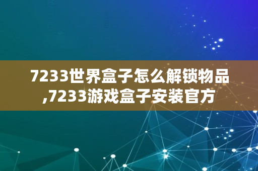 7233世界盒子怎么解锁物品,7233游戏盒子安装官方