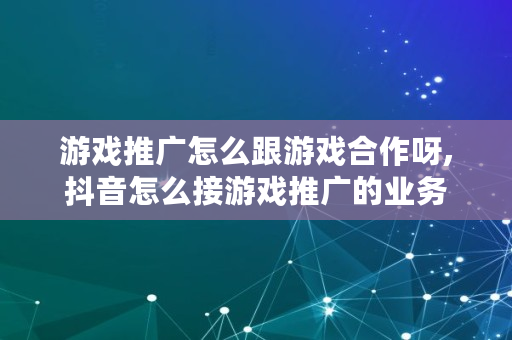 游戏推广怎么跟游戏合作呀,抖音怎么接游戏推广的业务