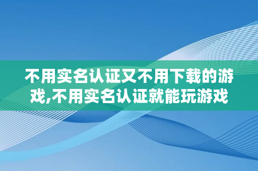 不用实名认证又不用下载的游戏,不用实名认证就能玩游戏的软件有哪些