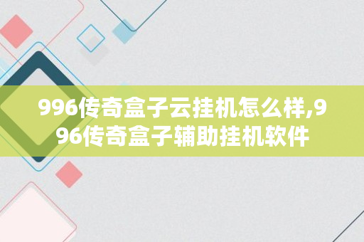 以上内容就是关于996传奇盒子辅助 挂机的问题**解答了,如果对你有所帮助的话,请收藏关注本站,这里将更新更多关于996传奇盒子辅助 挂机的内容。