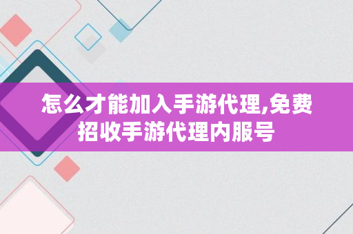 怎么才能加入手游代理,免费招收手游代理内服号