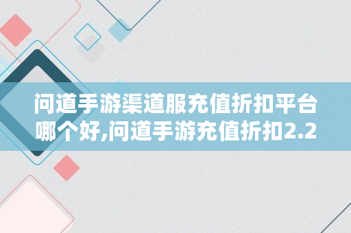 问道手游渠道服充值折扣平台哪个好