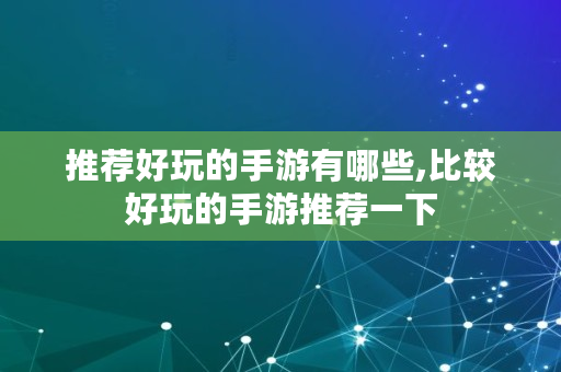 以上内容就是关于比较好玩的手游推荐的问题**解答了,如果对你有所帮助的话,请收藏关注本站,这里将更新更多关于比较好玩的手游推荐的内容。