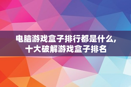 电脑游戏盒子排行都是什么,十大破解游戏盒子排名