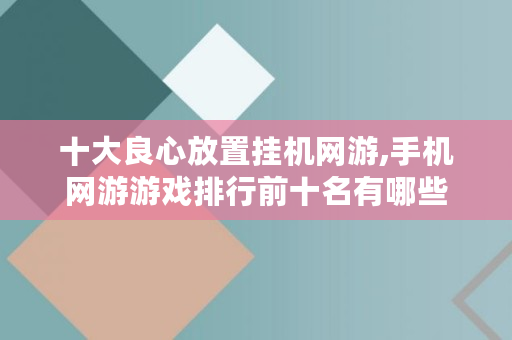 十大良心放置挂机网游,手机网游游戏排行前十名有哪些