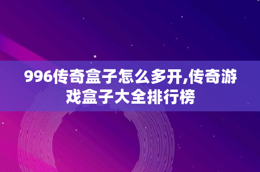 996传奇盒子怎么多开,传奇游戏盒子大全排行榜