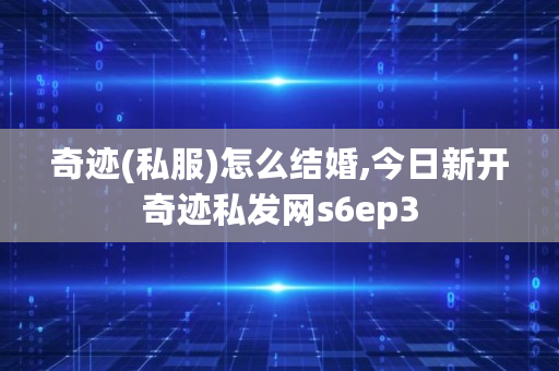 奇迹(私服)怎么结婚,今日新开奇迹私发网s6ep3
