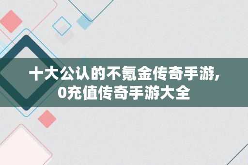 十大公认的不氪金传奇手游,0充值传奇手游大全
