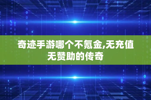 奇迹手游哪个不氪金,无充值无赞助的传奇