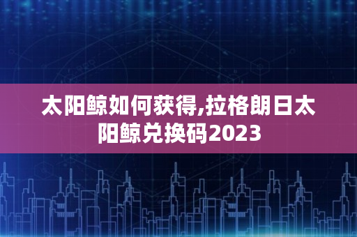 太阳鲸如何获得,拉格朗日太阳鲸兑换码2023