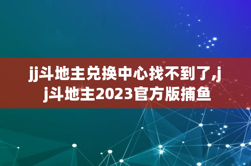 jj斗地主兑换中心找不到了,j j斗地主2023官方版捕鱼