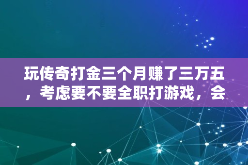 玩传奇打金三个月赚了三万五,考虑要不要全职打游戏,会变懒惰吗,打金传奇可以赚多少钱