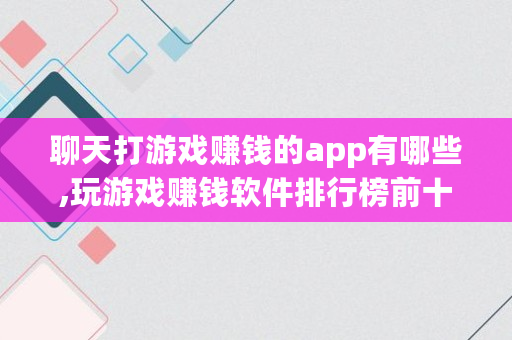 聊天打游戏赚钱的app有哪些,玩游戏赚钱软件排行榜前十名