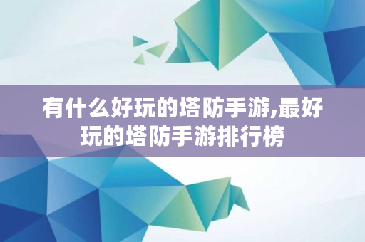 有什么好玩的塔防手游,最好玩的塔防手游排行榜