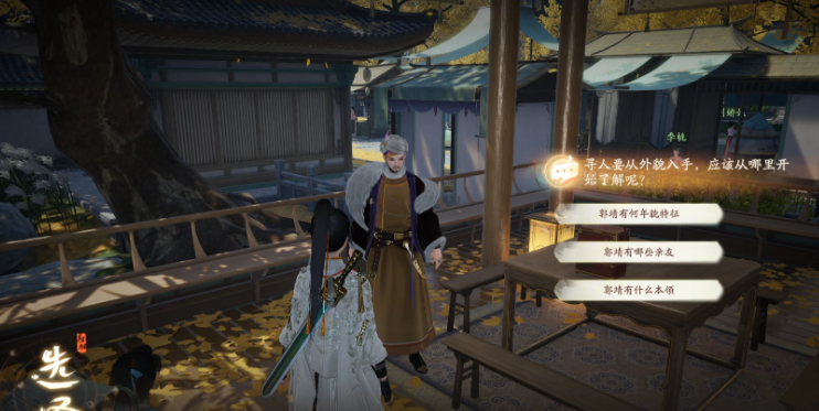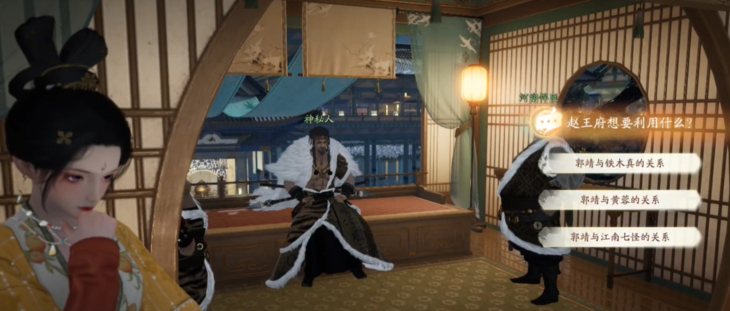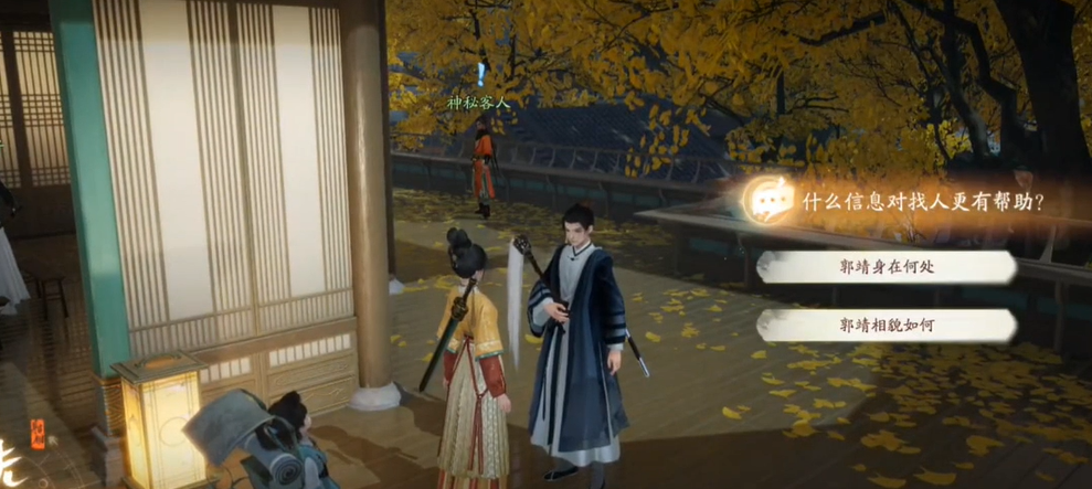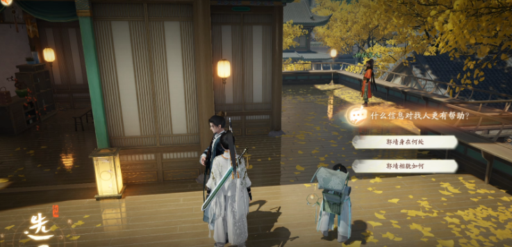 9、出楼遇见【郭靖】,点击三个发光的部位获得人物线索;