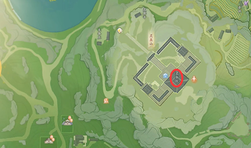 1、首先玩家前往无定坊传送点,中午的时候前往【灵水院】;