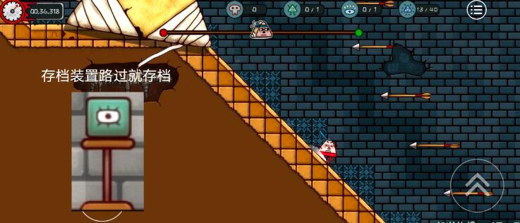 经过存档和弹簧二连跳的位置后面到这个地方不要停直接冲不然会中箭,不要有多余动作多动一下就中箭