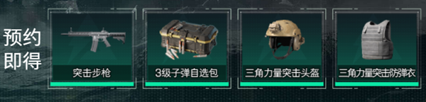 1、完成预约就能获得突击**、3级子弹自选包、三角力量突击头盔和三角突击防弹衣。