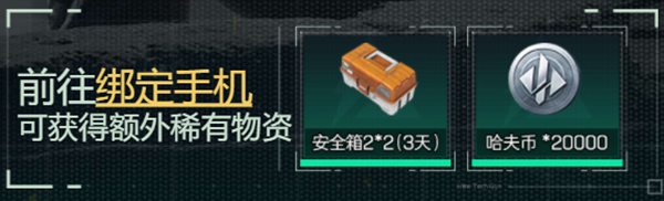 2、绑定收集还能额外获得2个三天的安全箱2以及20000哈夫币。