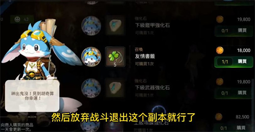 2、迷宫当中的【胡奇商店购买】,玩家在进行迷宫探险的时候,概率会遇见蓝色的npc【胡奇】,可以和他交流购买强化石头,一般是一天一刷新。