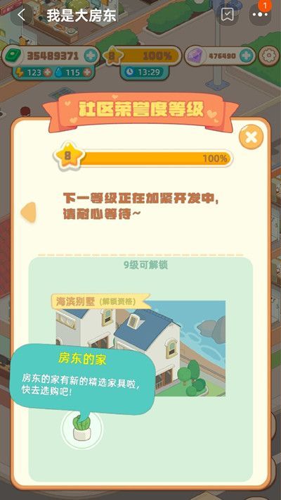 目前我是大房东9级之后的玩法还没有更新上线,所以只能升到8级满经验,无法解锁9级。