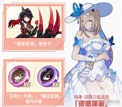 参与补给消耗水晶,可选择兑换「玉骑士·月痕」/「魇夜星渊」晋升印章、「魇夜星渊」角色卡等丰富奖励!
