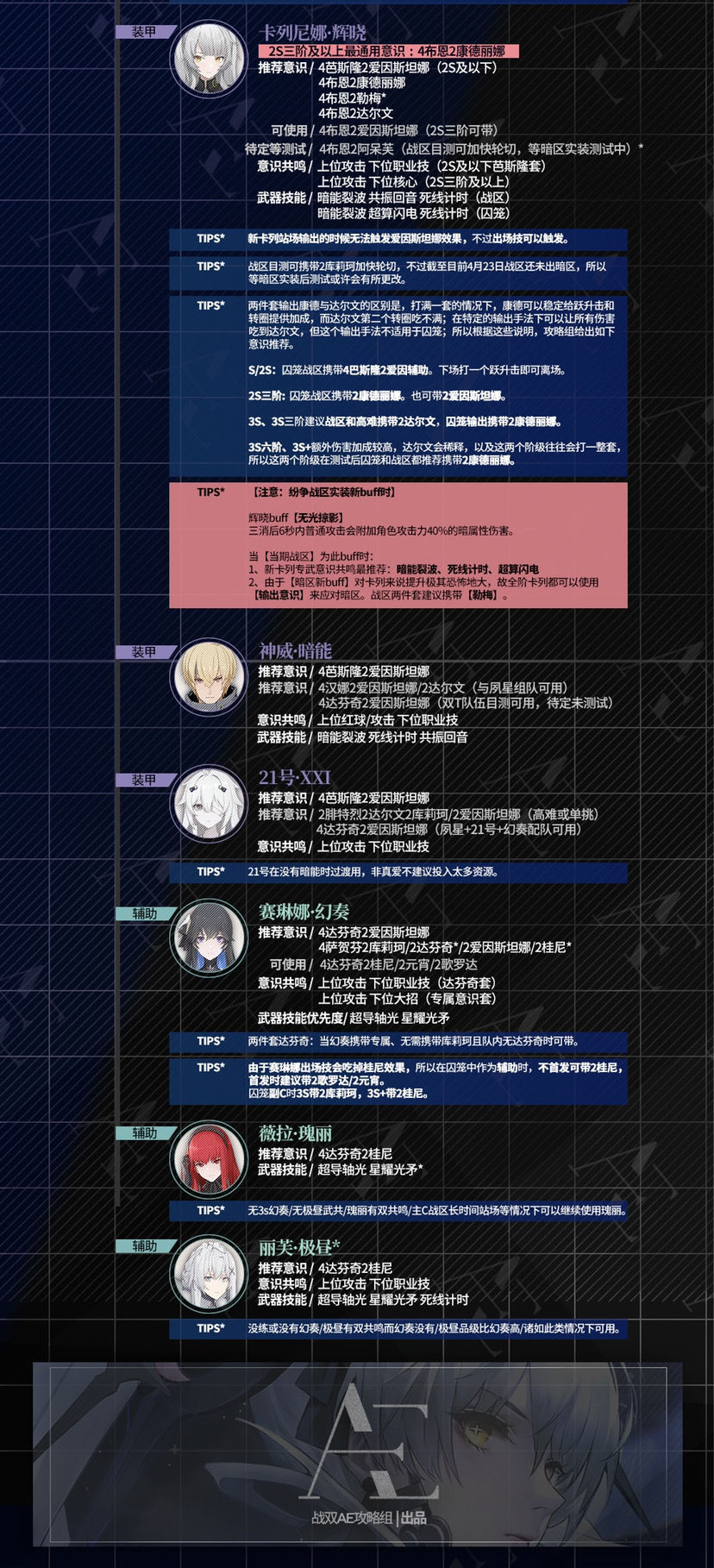 (以下意识推荐中的战区推荐为当期buff并非辉晓专属buff时)