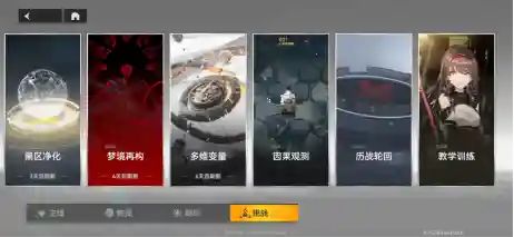 介绍完常规的钻石战略资源,再就是挑战关卡的资源了,这里我们要首先留意:黑区净化、梦境再构、**变量这三个挑战玩法,是每周都会更新奖励的。 所以我们需要每周都记得打。其中黑区净化为:获取五星刻印、刻印神系词条材料的关卡 。