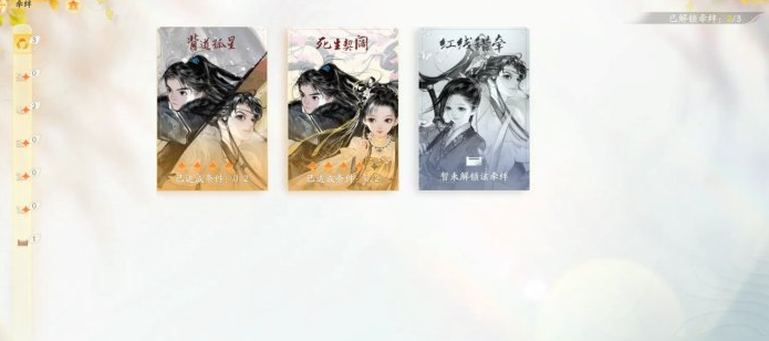 游戏中有三个羁绊,郭靖杨康、郭靖黄蓉、杨康穆念慈,羁绊成员养成到****有奖励道具。本身郭靖、黄蓉、杨康三人就是常驻池不错的防御、**、近战侠侍,穆念慈是限定池近战,可以考虑作为二队人选。