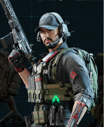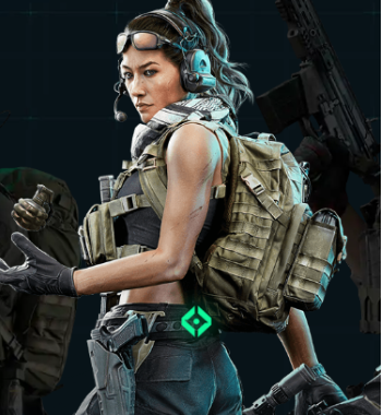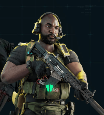 1、罗伊·斯米,特长是救起的队友可以快速恢复血量,可以使用道具烟雾遮挡敌人的视线。