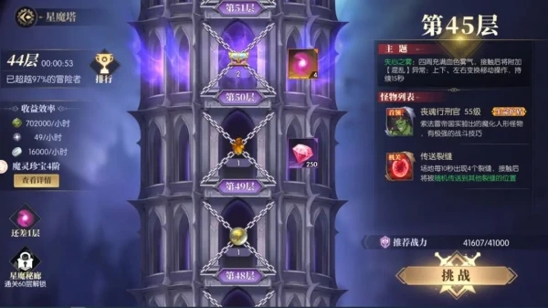 2、星魔塔部分关卡需要玩家达到指定**才可挑战。