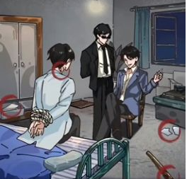 1、隐秘的档案消失的弟弟,首先将人物移动到场景,点击染血的木棍、弟弟身上的伤痕、撕掉的照片,下滑衣柜抽屉找到财产证明