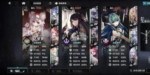 2、如图所示,后期卡罗琳要替换第6个神子,丹妮没有的话可以换成小闪,神光的话目前没有资源可以先不拉,主要吧**拉起来,然后对战的时候借个满练度的纳菲