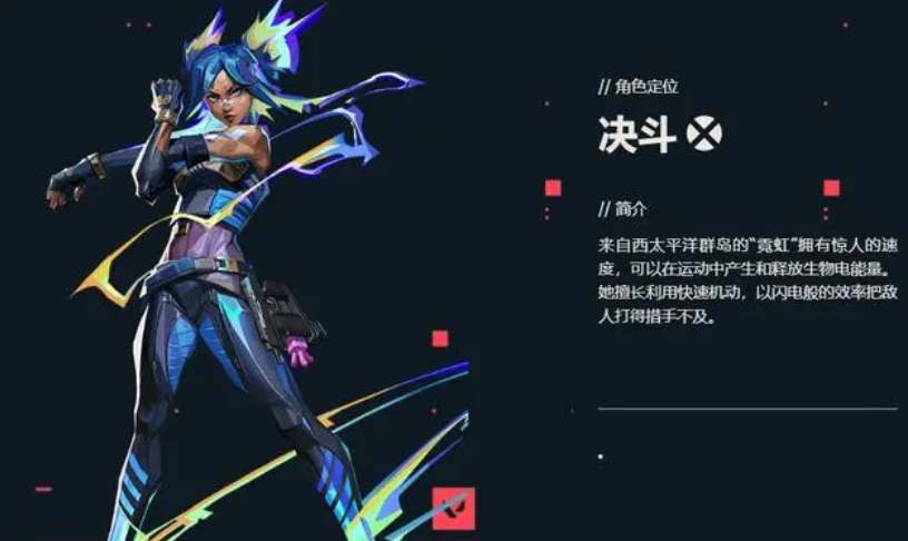 霓虹的定位是决斗,特点是拥有较强的机动能力并且可以击倒敌人。