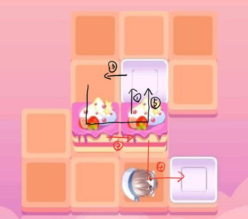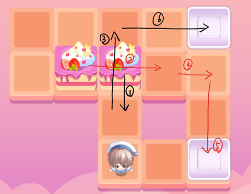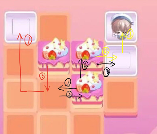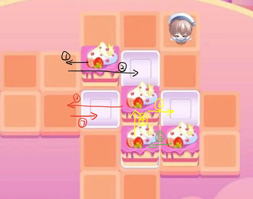这个推蛋糕的小游戏其实就是很经典的推箱子,然而似乎有很多玩家都不清楚推箱子如何顺利过关。