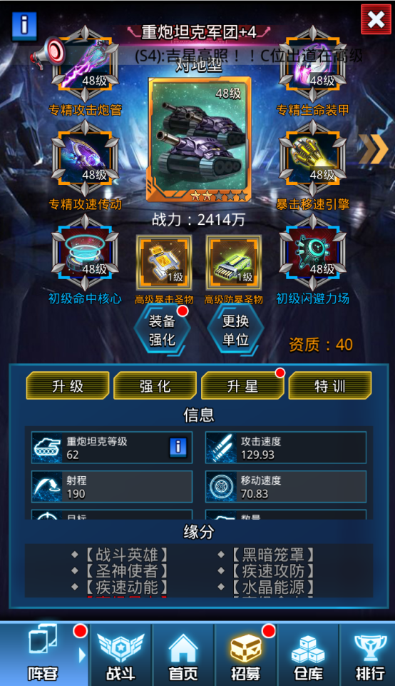 首先在布阵方面则是顺利通关的基础手段了,在游戏中我们会面对各种不同阵型以及属性的敌人,所以我们也需要相对应的做出改变,无论是通过游戏自带的布阵随机变换,还是玩家自己更好的改变布阵位置都是会有着不一样的情况出现,在玩家打不过的时候这一个小技巧则是非常实用的了!其次在阵容的选择上高品质的卡牌当然是**了,不过对于玩家想要在后期也要有所作用的话,选择中上等品质的坦克军团或者战机则是更好的,因为这样的卡牌在中后期升阶提升的难度上则是会更简单了,在后期升阶升星更高的坦克属性是可以远高于高品质的卡牌的,用后期的努力来超过本身的属性,这样的长久打算才是玩家升级更好的选择!