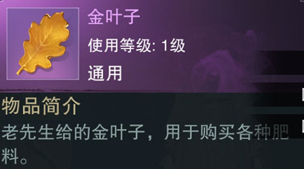 踏青时节,金陵城外有位老先生在种一颗黄金树,快去看看吧。老先生会赠予少侠**数量的金叶子,少侠可用其前往肥料商人处换取肥料,再将肥料送给老先生,即可增加黄金树的成长值。
