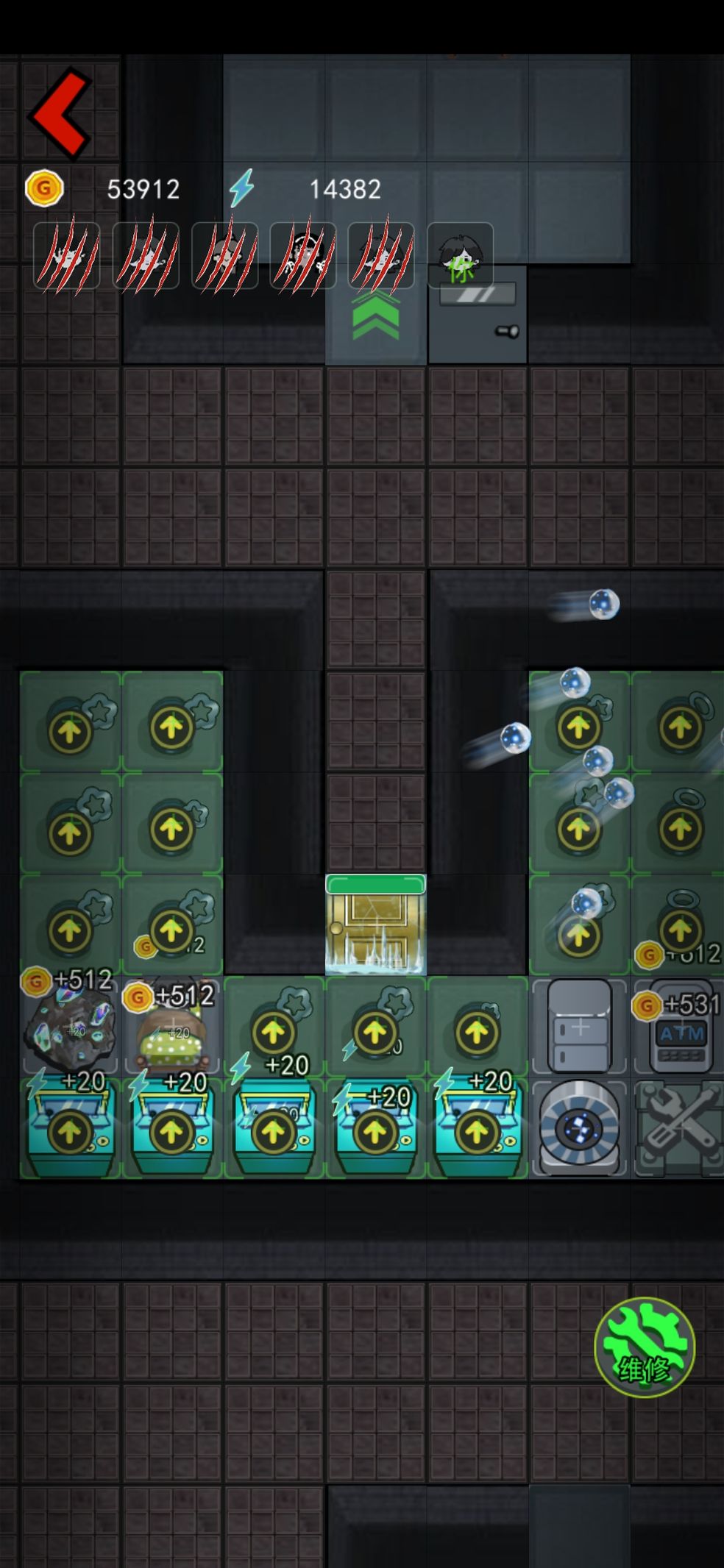 电力**要多,中期6台就可以了,然后升级电力为主,然后摆放矿石赚钱,钱多了可以继续升级门或者武器,这时候4台水泡枪基本就无忧了。