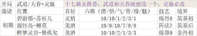 **:如果前期招到了技艺高于图上3位的弟子,那么这几个除开柳莫都可以不邀请。