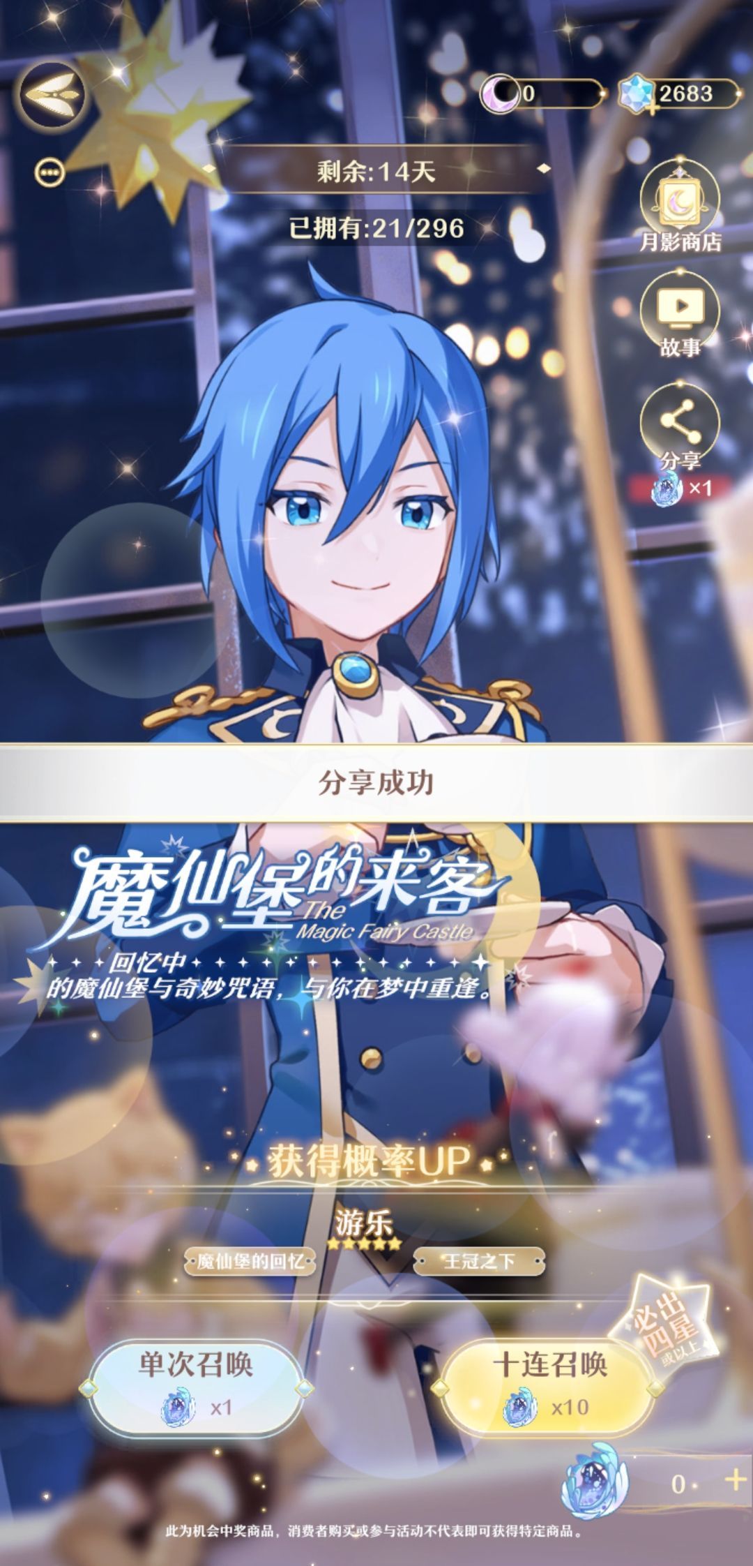 2、抽卡任务每日抽卡结果分享:每日**抽完卡不要着急离开~动动手指点一下右上方的分享,只要分享成功就可以获得20个晶石。