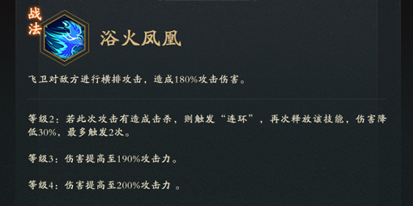 玩家们的全体攻击力提升,同时还可以提高很大的暴击率,玩家们在开启绝技的同时,可以让自己的攻击力上升很多,**可以累积百分之六十的攻击以及相对应的气势数值,同时还有暴击。
