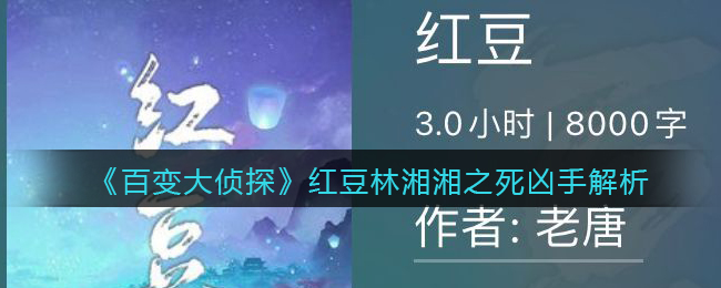 以上就是本站游戏网为您带来的百变大侦探红豆林湘湘之死谜底揭晓,红豆林湘湘之死凶手是谁的**内容,希望对大家有所帮助,欢迎大家阅读!